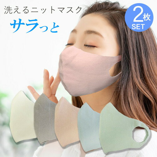 【日本製】洗えるニットマスク サラっとタイプ 2枚組 抗菌防臭 / 洗って繰り返し使える / 綿 コットン Ag 銀イオン / 咳エチケットに / ホールガーメント 無縫製 /オフホワイト・ライトグレー・ピンク・サックス・グリーン