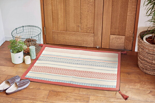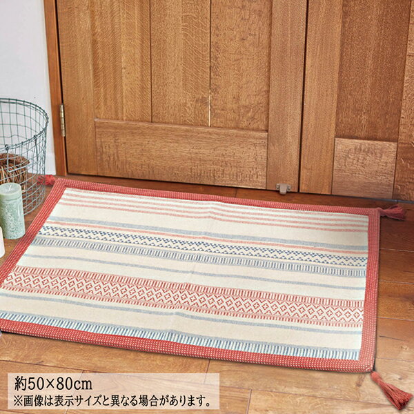 送料無料 インド綿 ナチュラルクール マット 玄関マット 廊下敷き 約50×80cm 綿100% コットン 洗濯機 洗える オールシーズン タッセル付き テラ レッド 高級感 マット エントランス リビングマット センターマット 絨毯 ラグ 玄関 室内 おしゃれ