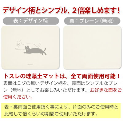 ,br> 【トスレ 珪藻土 マット スクエア キャットヨコM】 トスレ 珪藻土マット シリーズは、全てウラオモテ両面使用OKだから、片面使用時と比較して2倍永く使えます。