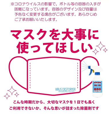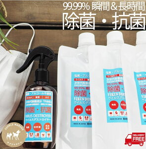 商品詳細 商品名 ウイルスデストロイヤースプレーボトル250ml 1本 詰替え用パウチ300ml3本 原材料名 ポリヘキサメチレンビグアナイド、パンシル(柿渋エキス) 内容量 スプレーボトル250ml 1本 詰替え用パウチ300ml3本 ご使用方法 商品裏面をご確認ください。